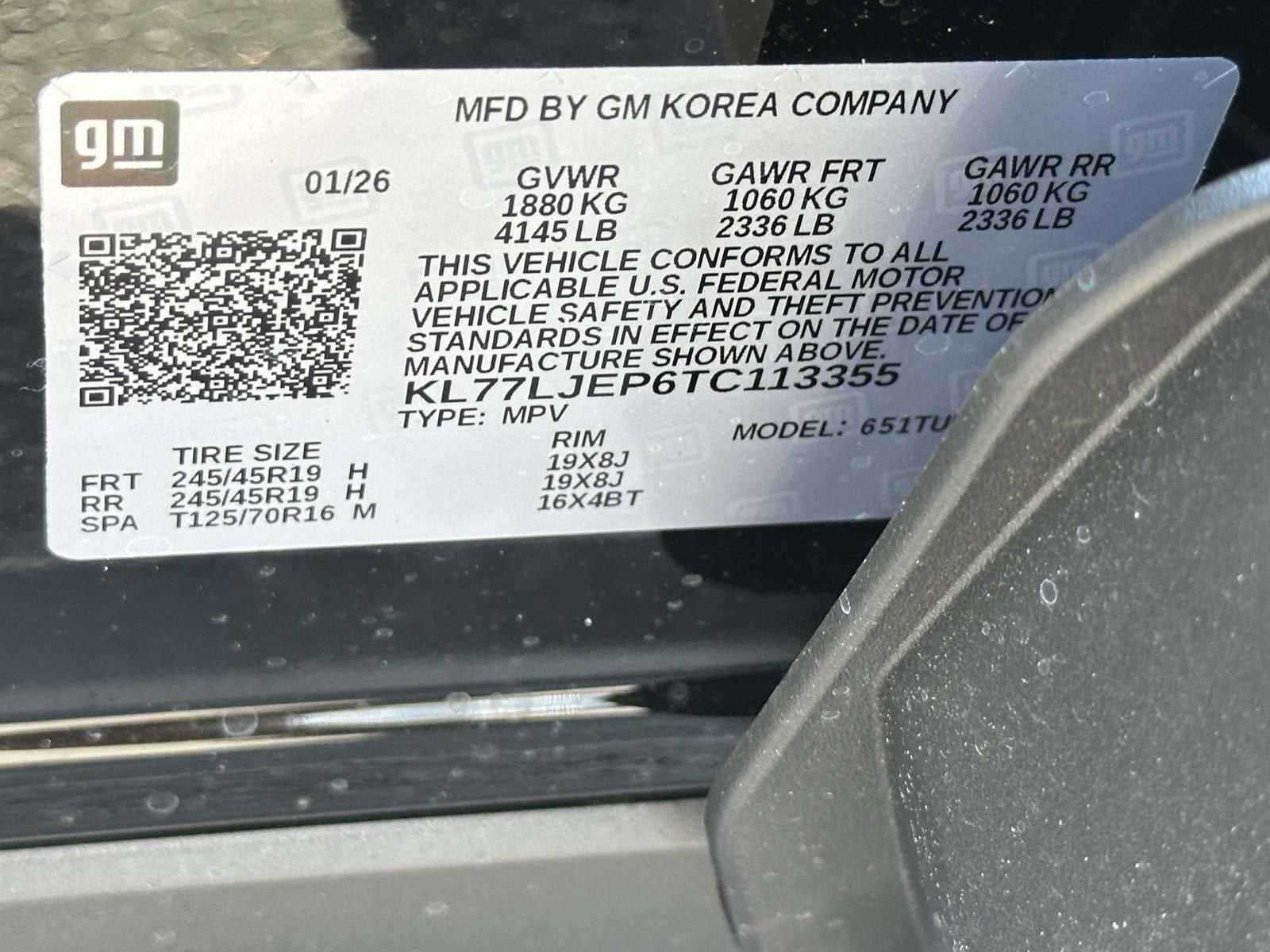 - Tires, 245/45R19 all-season, blackwall