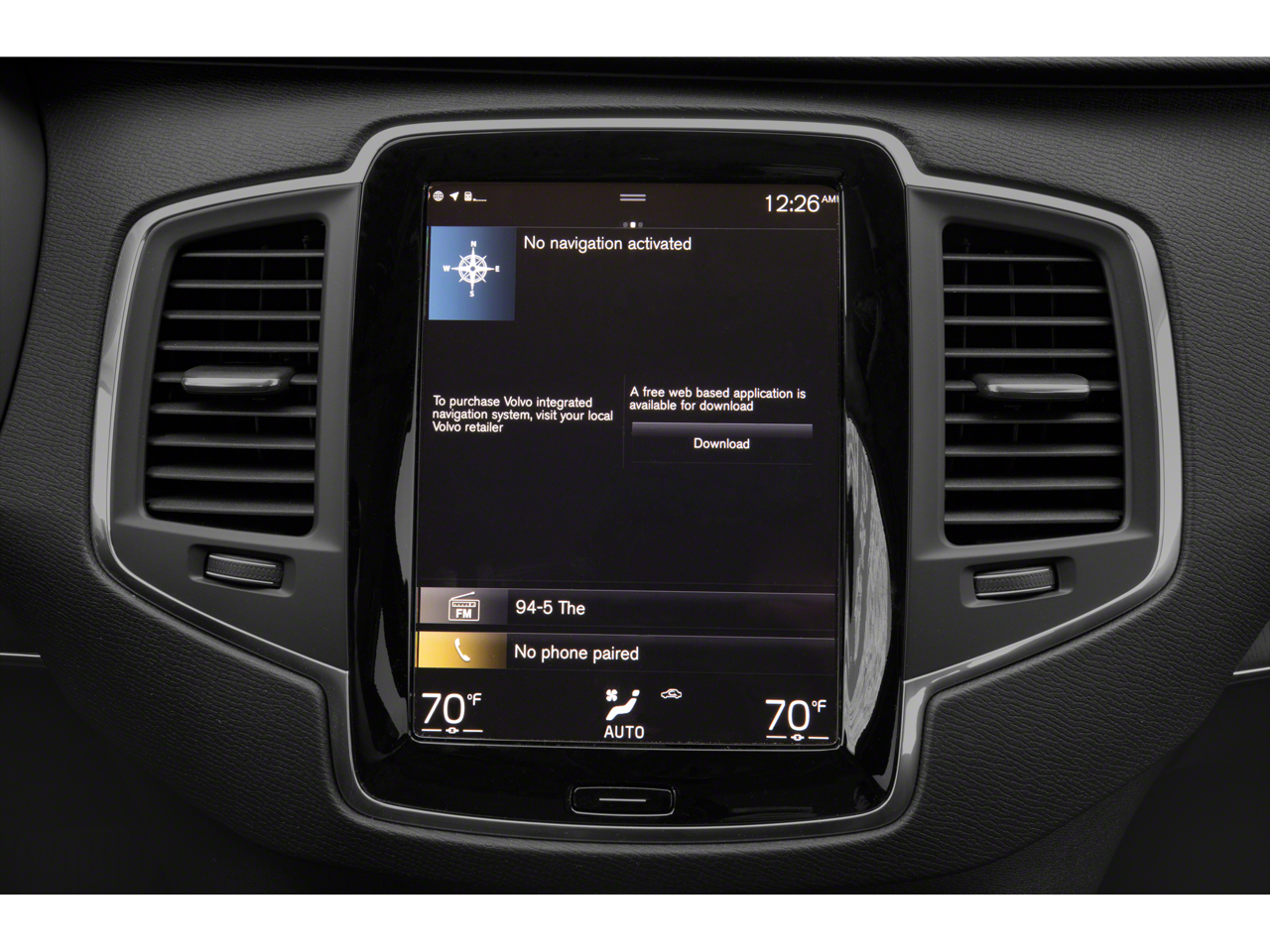- Radio: High Performance Audio System w/Sensus Nav -inc: 10 speakers including subwoofer, 9" Volvo Sensus touchscreen display, Bluetooth connectivity w/audio streaming, SiriusXM satellite radio w/3-month trial subscription, smartphone integration (Apple CarPlay/Android Auto), 2 front USB connectors, voice control and WiFi hotspot w/complimentary trial subscription