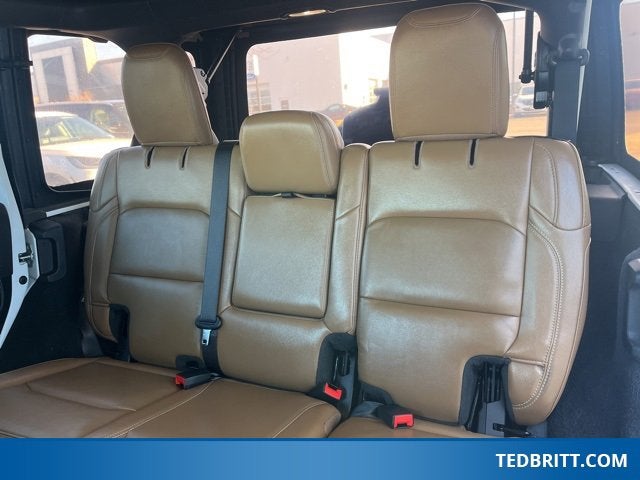 Cold Weather Group (Heated Front Seats and Heated Steering Wheel), Quick Order Package 25R, Ford Blue Advantage: Blue Certified Certified, 4.10 Rear Axle Ratio, Alloy wheels, Front Center Armrest w/Storage, Non-Lock Fuel Cap w/o Discriminator, Passenger door bin, Performance Suspension, Power door mirrors, Premium Tan Sunrider Soft Top, Traction control, Variably intermittent wipers, Wheels: 17 x 7.5 Machined w/Black Pockets, 4-Wheel Disc Brakes, 9 Speakers, ABS brakes, Air Conditioning, AM/FM radio: SiriusXM, Apple CarPlay/Android Auto, Auto-dimming Rear-View mirror, Automatic temperature control, Aux Battery, Brake assist, Compass, Cruise Control / Speed control, Delay-off headlights, Driver door bin, Driver vanity mirror, Dual front impact airbags, Dual front side impact airbags, Electronic Stability Control, Emergency communication system: SiriusXM Guardian, Engine Oil Cooler, Front anti-roll bar, Front Bucket Seats, Front dual zone A/C, Front fog lights, Front License Plate Bracket, Front reading lights, Fully automatic headlights, Garage door transmitter, Heated door mirrors, Illuminated entry, Integrated roll-over protection, Leather steering wheel, Low tire pressure warning, Navigation System, Occupant sensing airbag, Outside temperature display, Panic alarm, ParkView Rear Back-Up Camera, Passenger vanity mirror, Power steering, Power windows, Premium Cloth Low-Back Bucket Seats, Radio data system, Radio: Uconnect 4C Nav w/8.4 Display, Rear anti-roll bar, Rear reading lights, Remote keyless entry, Remote Start System, Security System, Split folding rear seat, Steering wheel mounted audio controls, Stop-Start Dual Battery System, Tachometer, Telescoping steering wheel, Tilt steering wheel, Trip computer, and Voltmeter
